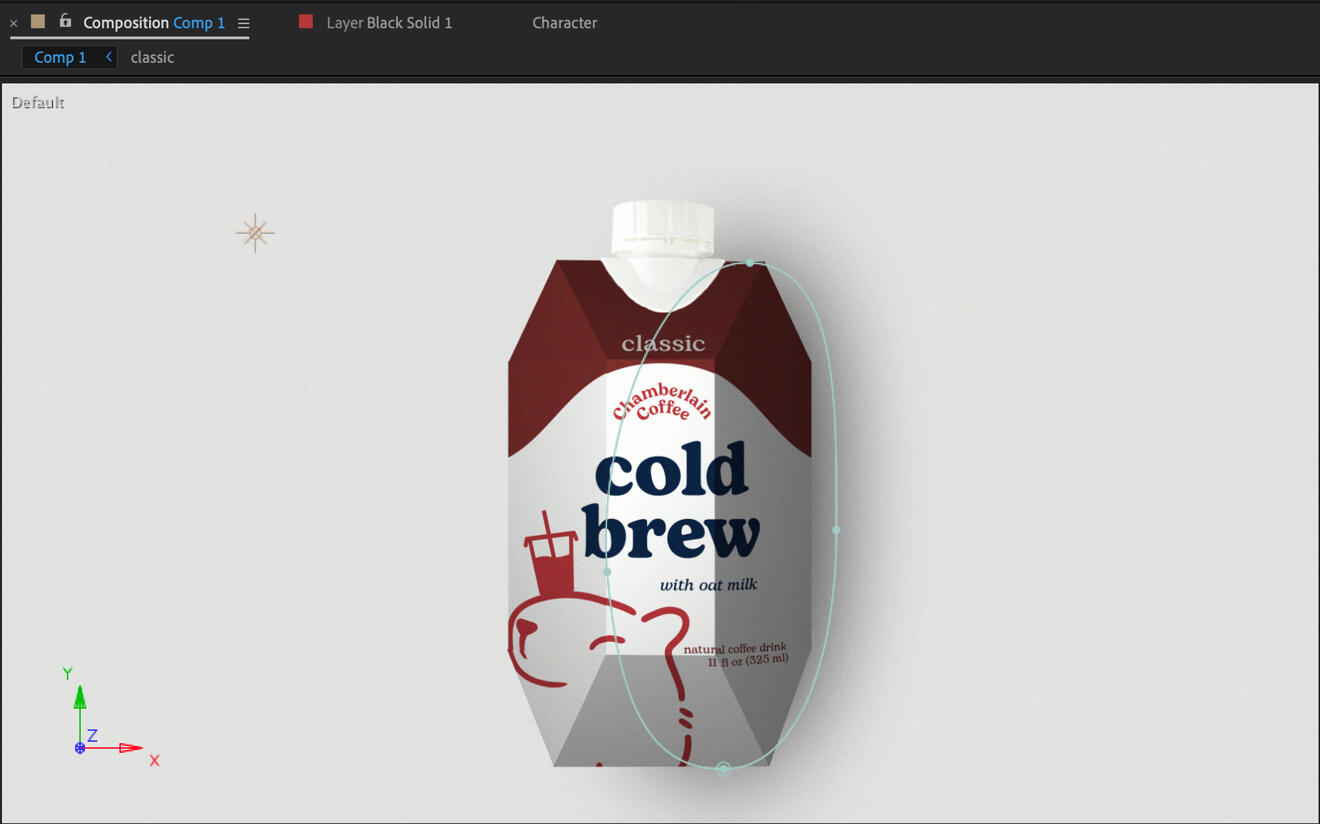 Due to the fact that our dielines were custom made, we could not find a mockup to fit our packaging. This meant we also had to custom make a mockup as well. This mockup was made in Adobe After Effects using 3D layers and lighting layers as neither of us had access to or knowledge of how to use 3D programs.