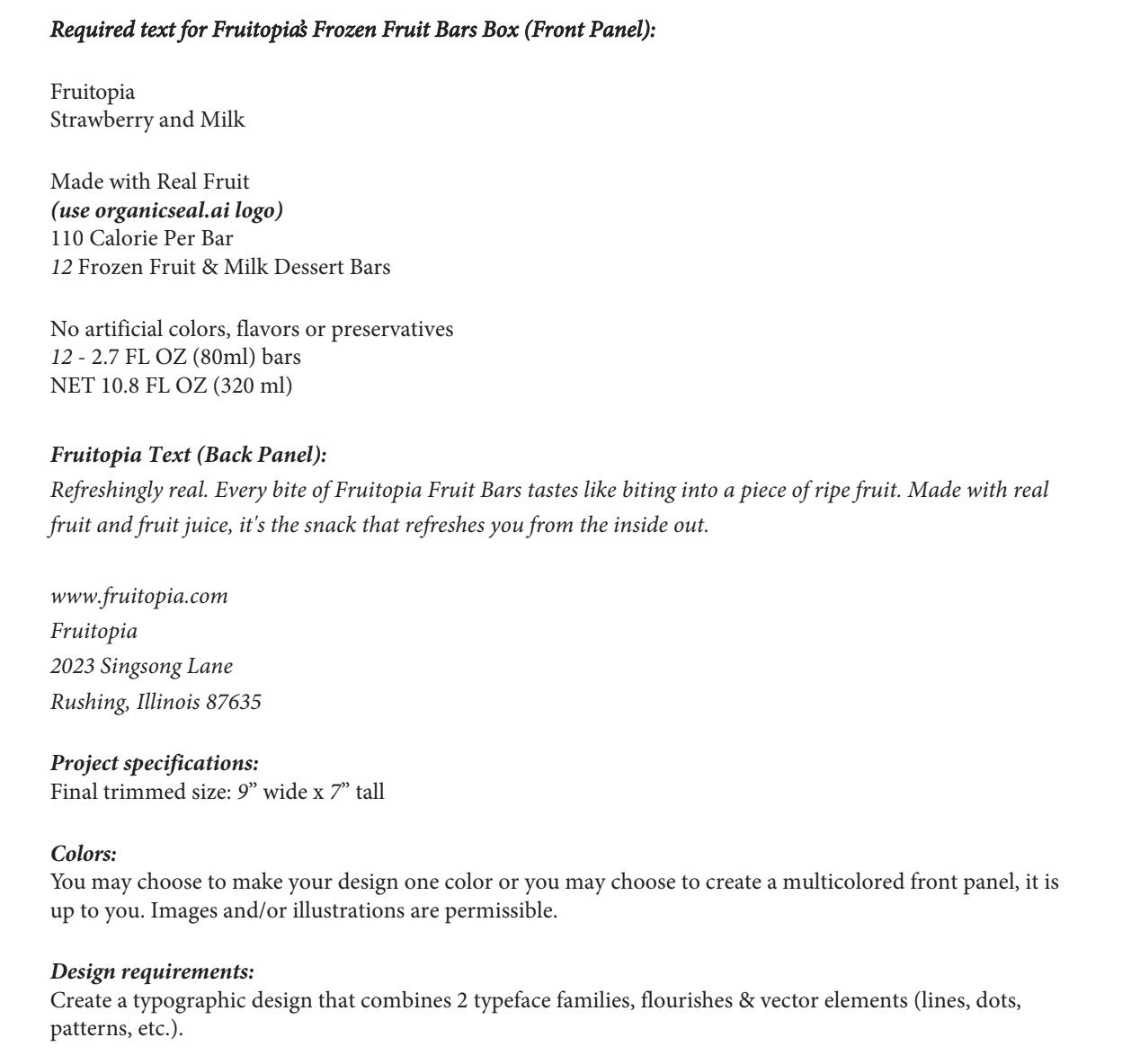 Fruitopia wants packaging for their line of frozen fruit bars to reflect the dynamic change in their business.